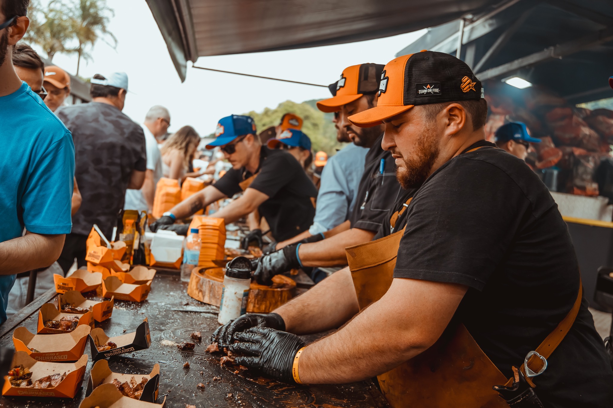 O Team On Fire, composto por experientes churrasqueiros, realiza performances e mostra ao público a arte de fazer churrasco. “O time fixo é formado por 12 profissionais. Os demais são voluntários que aprendem na prática com os melhores chefs do Brasil a arte de fazer churrasco. É uma troca muito genuína e enriquecedora”, explica Sorocaba.