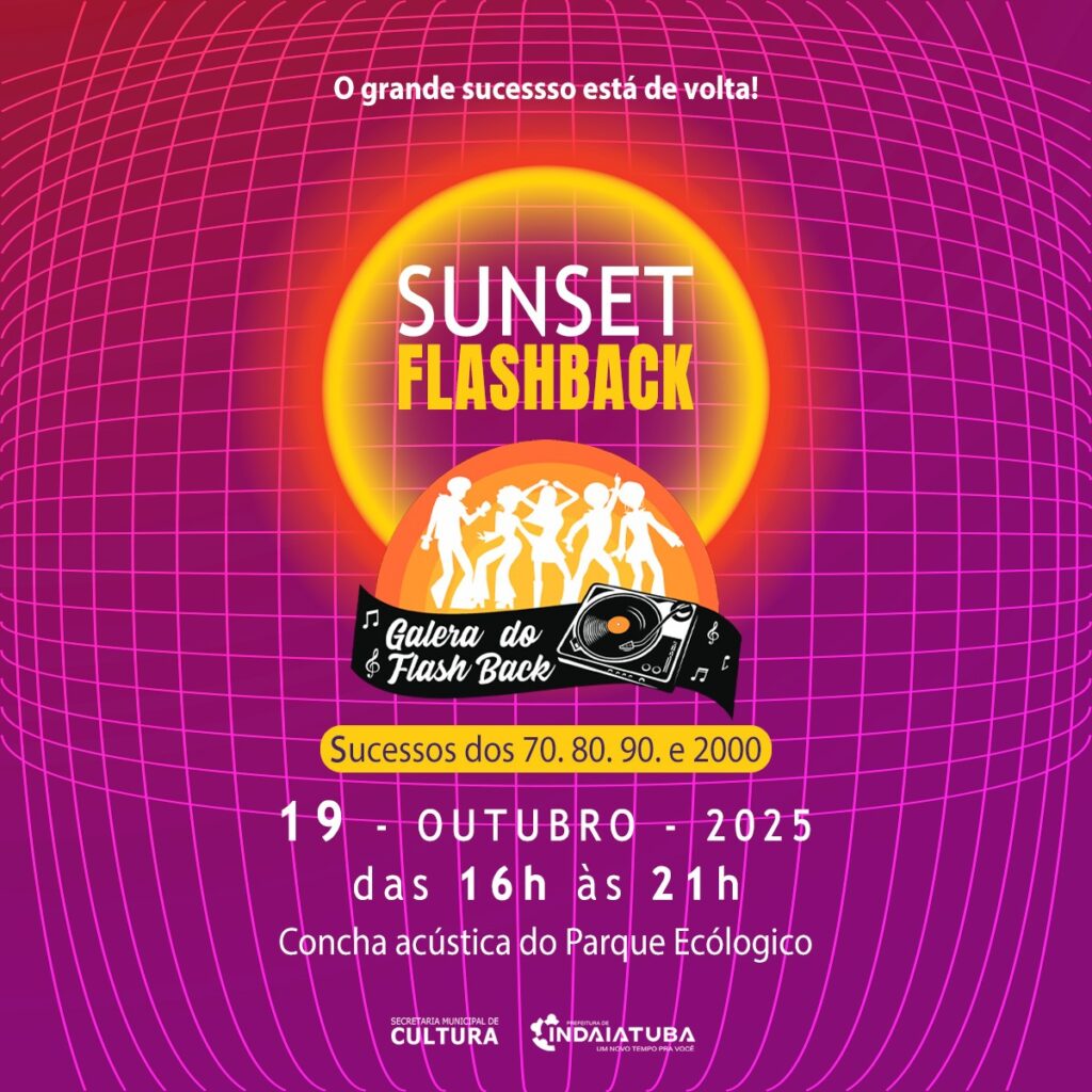 Com apoio da Secretaria de Cultura, neste domingo (19/10), a partir das 16h, tem o tradicional Sunset Flashback, em uma edição especial dedicada ao Outubro Rosa, unindo diversão em prol da conscientização e prevenção do câncer de mama. O evento, que já se consolidou na agenda da cidade, promete uma viagem inesquecível pelos maiores sucessos musicais das décadas de 70, 80, 90 e 2000.