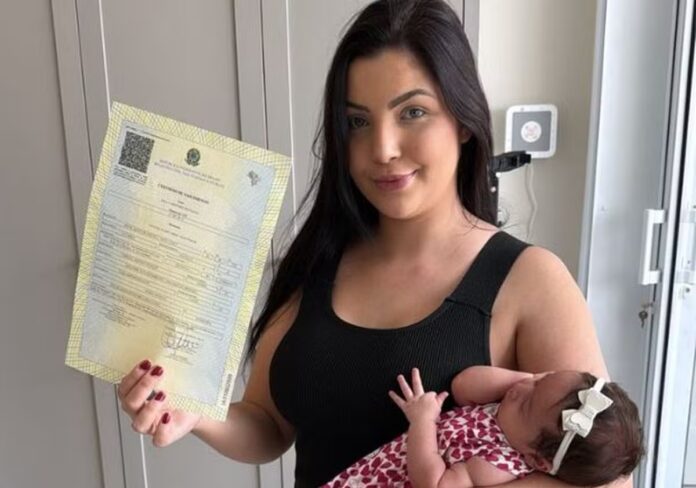 Segundo Caroline, um oficial do cartório — acompanhado de um segurança — foi pessoalmente até sua casa, em um condomínio da cidade, para entregar a nova certidão de nascimento.