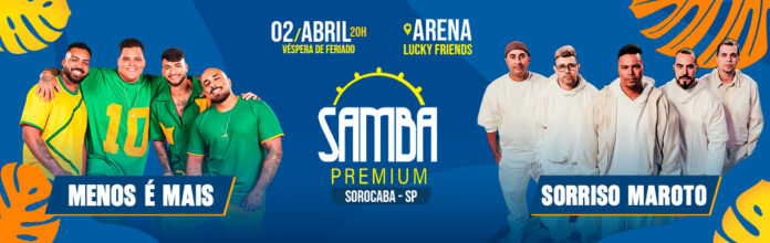 Os grupos Sorriso Maroto e Menos é Mais vão se apresentar em um festival de pagode no dia 2 de abril, na Arena Lucky Friends, em Sorocaba (SP). A produção do evento é assinada pela Via Brasil Produtora.